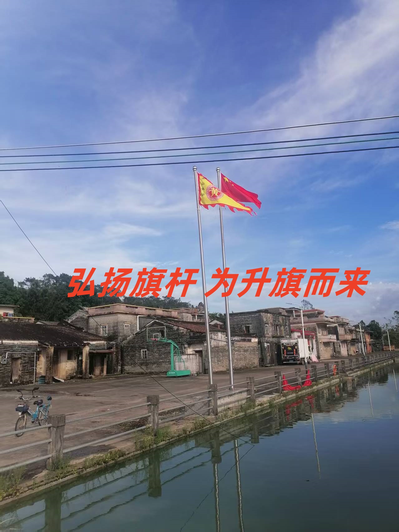江门黄氏宗祠两支旗杆安装完成 广东不锈钢定制旗杆锥形旗杆电动旗杆风动旗杆