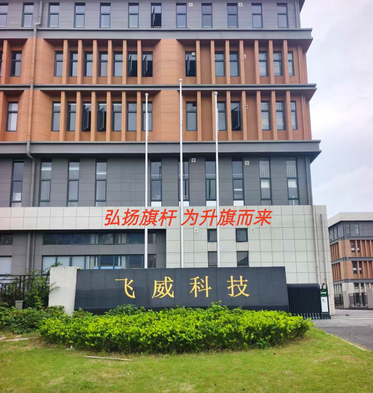 南京飞威科技有限公司三支旗杆交付使用 江苏旗杆旗帜供应南京定制旗杆厂家