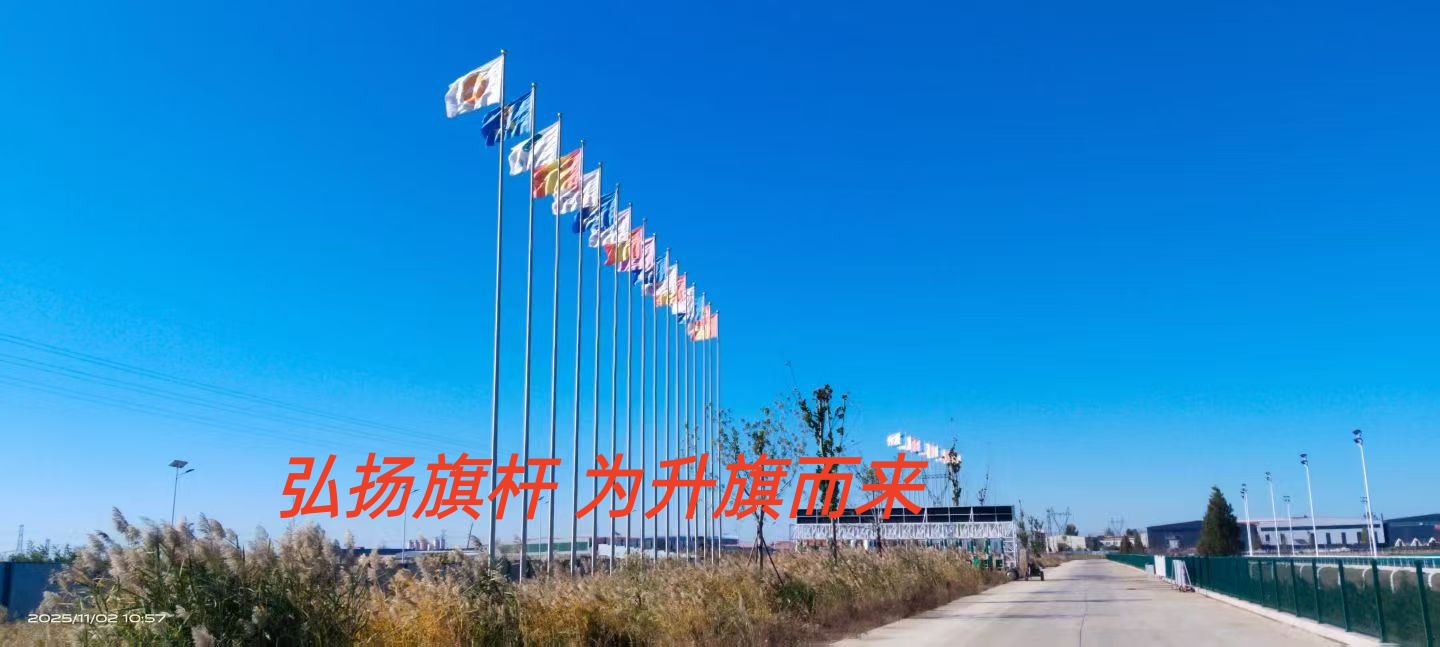 南洋优鲜郑州项目部21支12米电动旗杆安装完成 河南不锈钢旗杆定制生产厂家