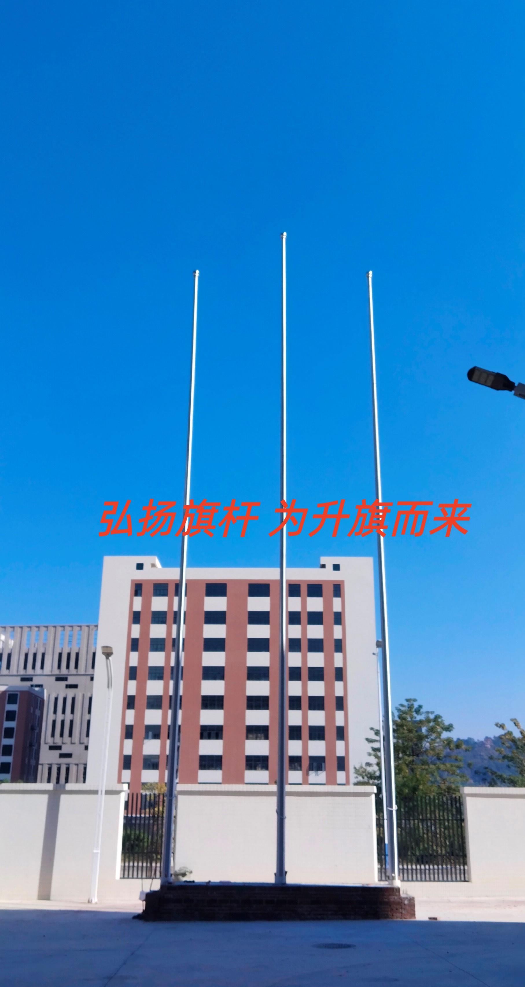 阜阳幼儿师范专科学校三支旗杆安装完成 阜阳电动旗杆音乐旗杆定制厂家