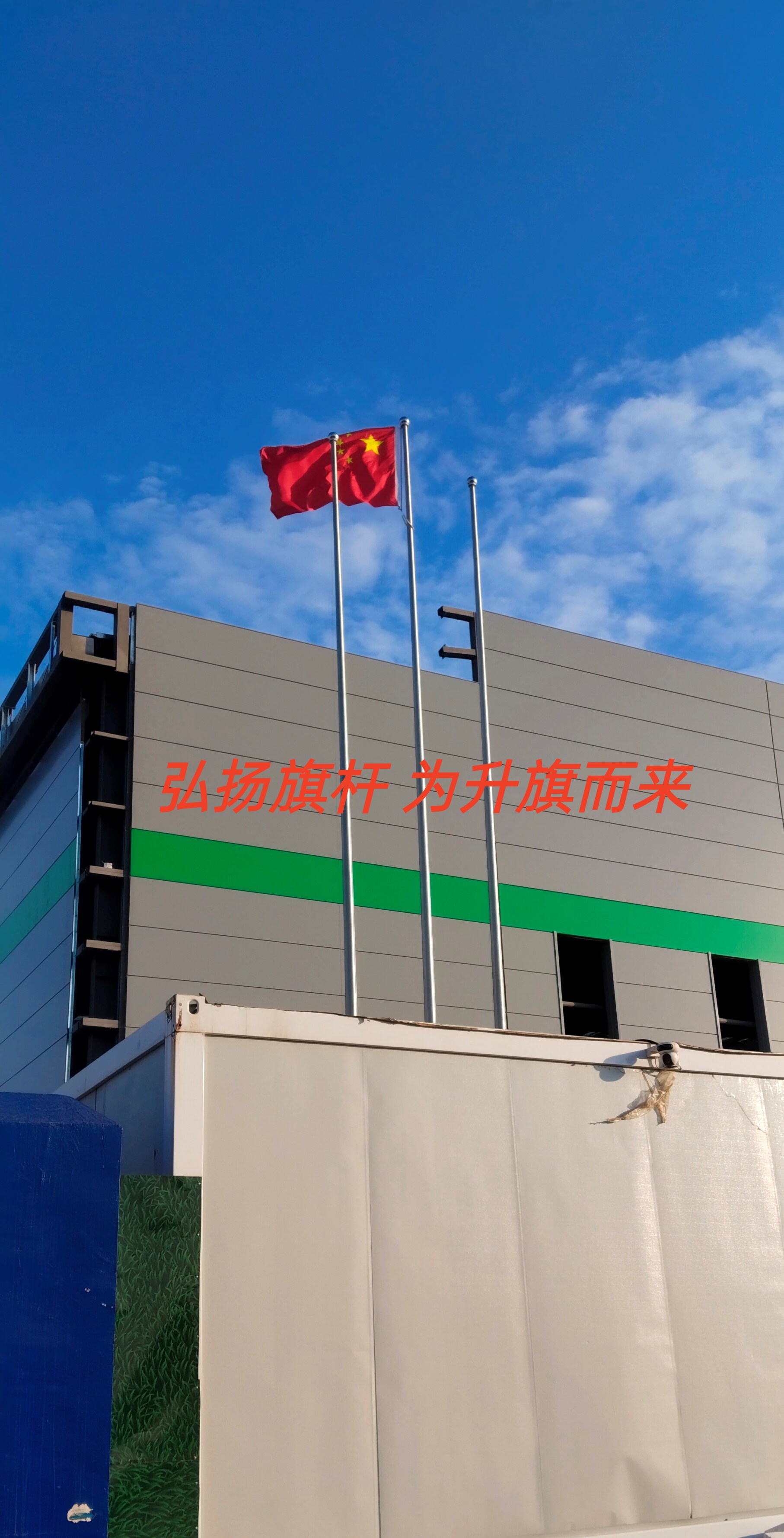 巨魔电器(安徽)有限公司三支旗杆安装成功 安徽企业旗杆工厂旗杆定制
