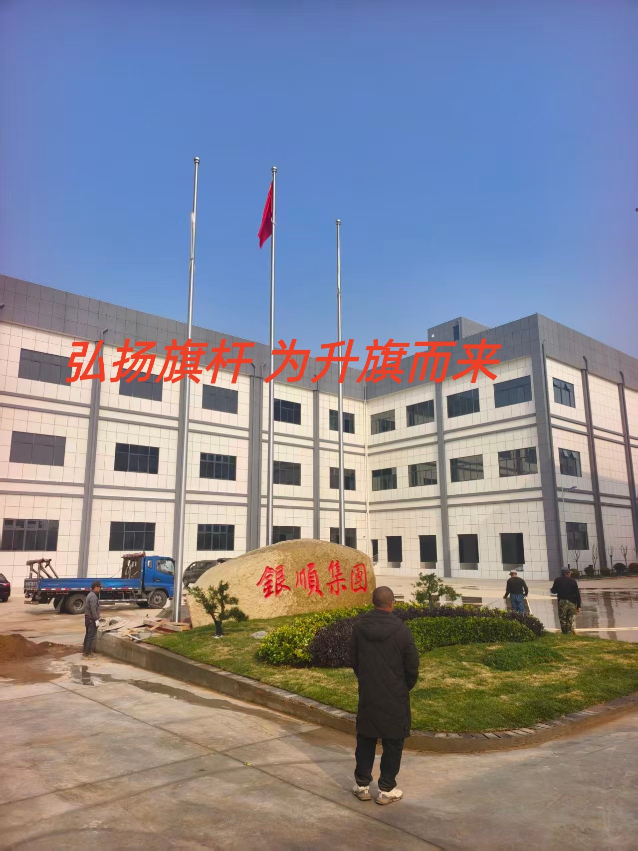安徽银顺食品集团有限公司三支旗杆交付使用 安徽旗杆厂家宣城旗杆定制