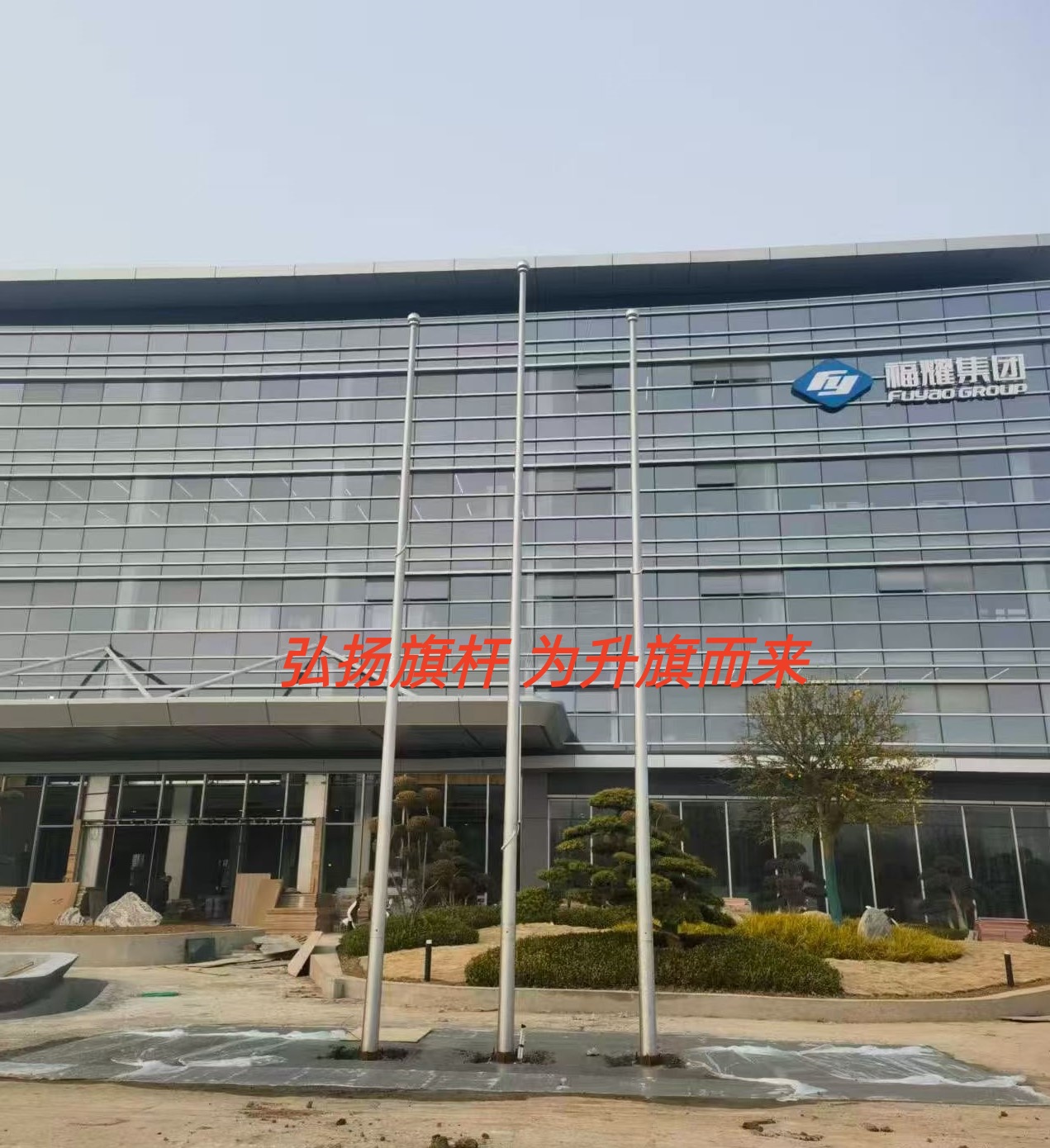 福耀集团三支旗杆安装成功 福州企业旗杆工厂旗杆酒店旗杆定制