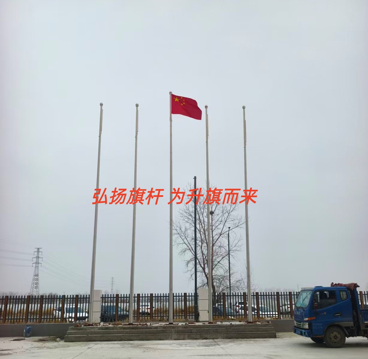 安徽伊诺尔电力设备有限公司三支旗杆交付使用 安徽本地旗杆生产厂家