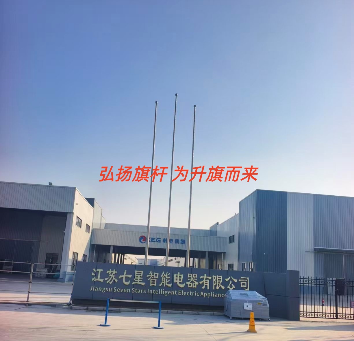 江苏七星智能电器有限公司三支旗杆交付使用 江苏顺风定位旗杆锥形旗杆