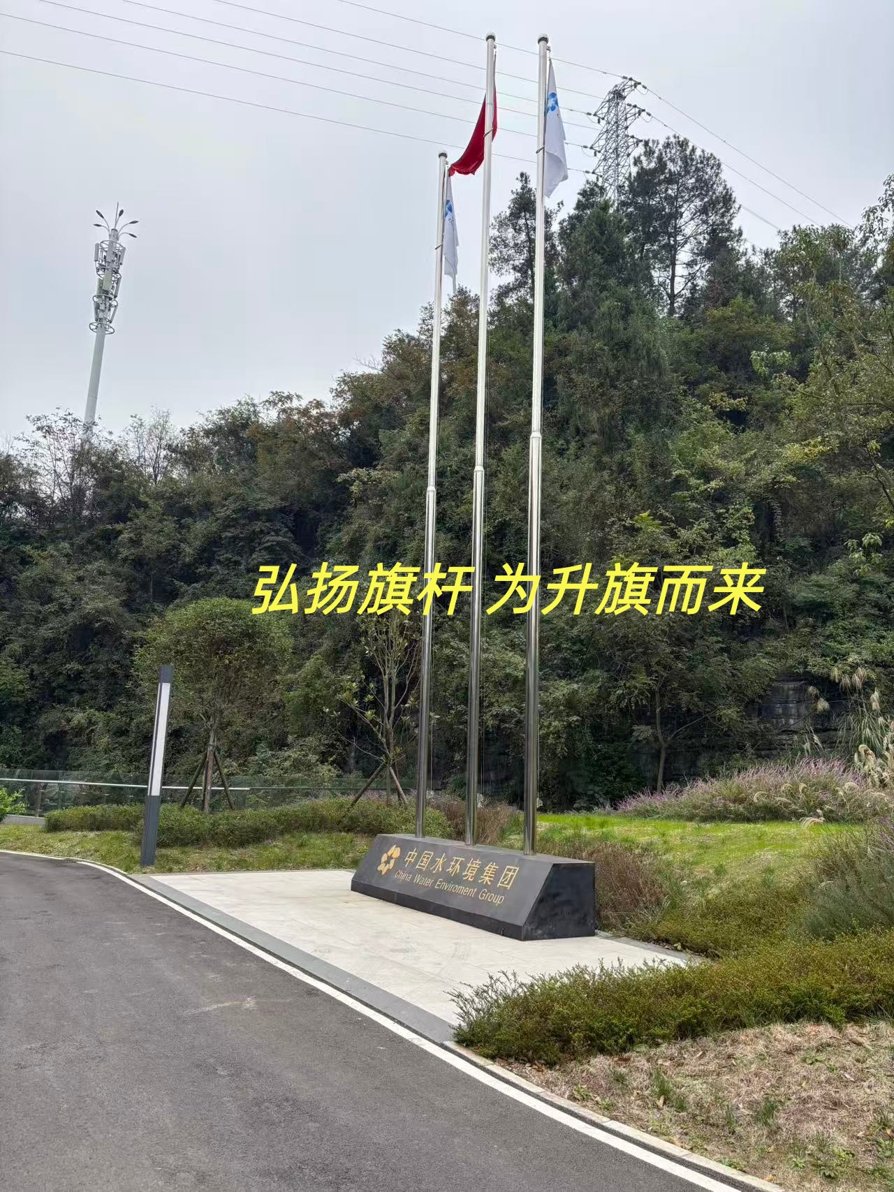 中国水环境集团(贵州怀仁)项目三支旗杆安装完成 贵州企业工厂项目部旗杆