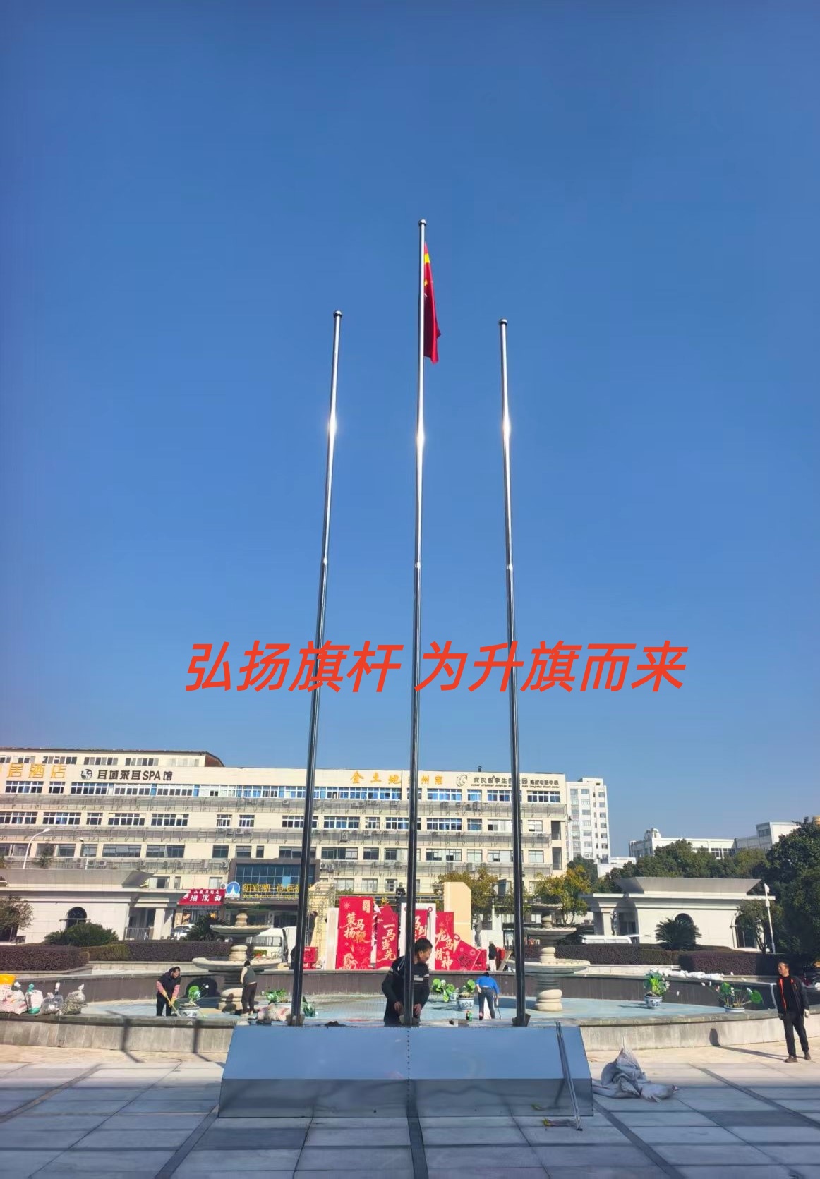 合肥白马山梦幻谷不锈钢旗杆安装完成 安徽合肥企业旗杆酒店旗杆工厂旗杆定制