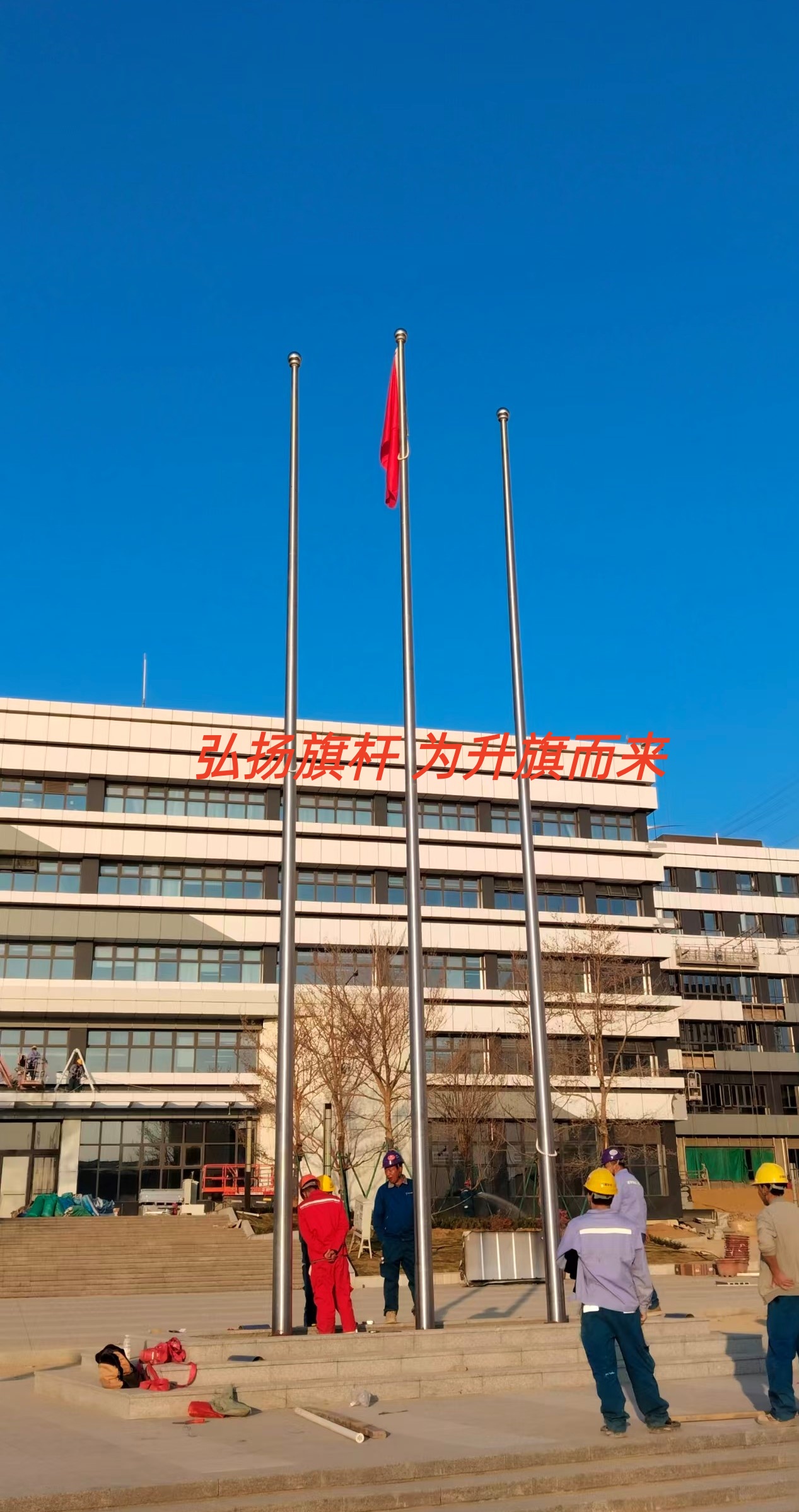 和县职业技术学校西校区三支旗杆交付使用 安徽定制企业旗杆工厂旗杆项目部旗杆