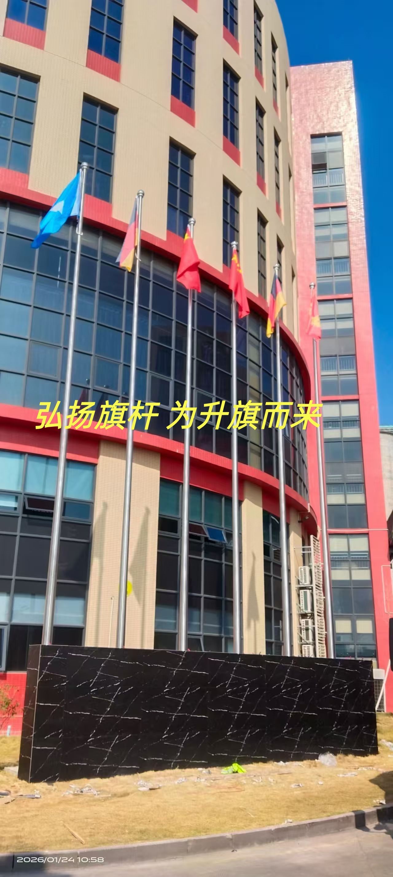 国轩高科股份有限公司三支旗杆交付使用 学校企业酒店旗杆定制